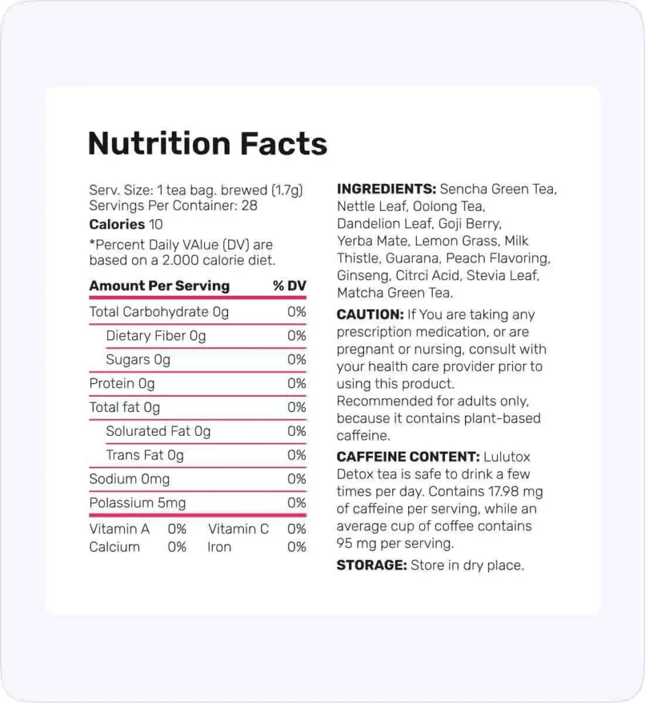With a carefully crafted herbal blend, Lulutox Detox Tea claims to support the body’s natural detox processes, reduce bloating, promote smoother digestion, and help restore a lighter, more energized feeling. According to the brand, by supporting digestive balance and helping the body eliminate excess waste and water retention, users may experience improved comfort, better daily energy, and a noticeable boost in overall wellness.
